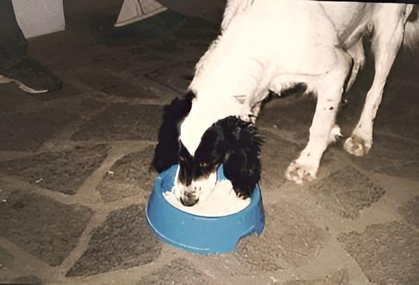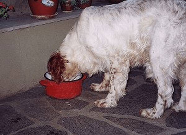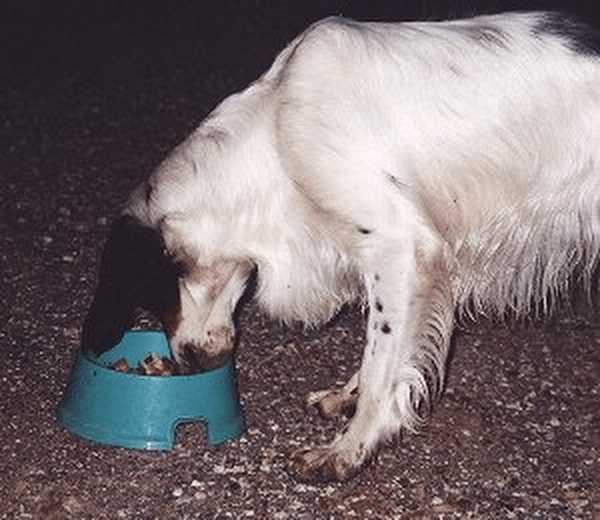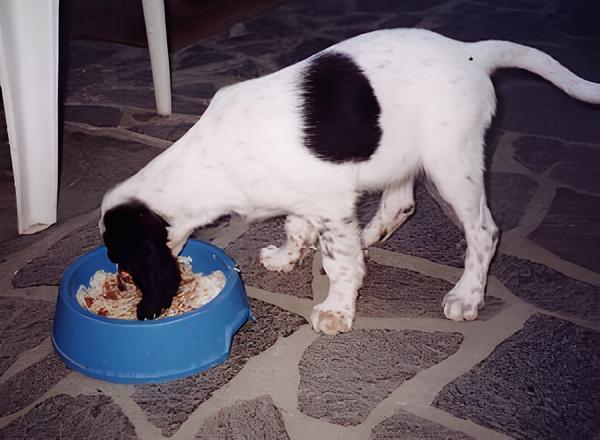 Attorno al 25° giorno di età si può iniziare a integrare l’alimentazione con qualche pasto costituito da latte più un tuorlo d’uovo ogni 100 mi. Dopo il 30° giorno si inizia lo svezzamento vero e proprio con un’alimentazione più asciutta. Uno svezzamento precoce risparmia la madre ed è molto utile nelle cucciolate numerose. I cuccioli vengono separati per periodi progressivamente più cuccioli al pranzo….e che fame!!lunghi dalla madre e tra i 45 e i 55 giorni devono essere svezzati e alimentati solo artificialmente. All’inizio dello svezzamento si unisce al latte bovino un poco di carne frullata o macinata fine che può anche essere sostituita da omogeneizzati. Si passa poi a un’alimentazione più asciutta costituita da: carne e/o pesce di buona qualità; riso ben cotto e/o fiocchi di cereali; latte; un poco di olio; vitamine e minerali. Latte, carne e pesce devono essere preponderanti sui cereali, costituendo F80% della razione a 40 giorni e il 60% a 60. Progressivamente si aumenta la quantità di cereali rispetto alla carne. Questa può essere somministrata cruda, se di buona qualità, ma è meglio scottarla. Un pasto al giorno può essere costituito da pane biscottato e latte. Durante tutto il periodo di crescita si può dare un tuorlo di uovo crudo tre o quattro volte alla settimana e del formaggio in parziale sostituzione della carne. L’integratore vitaminico-minerale deve avere livelli adeguati di calcio e di fosforo.