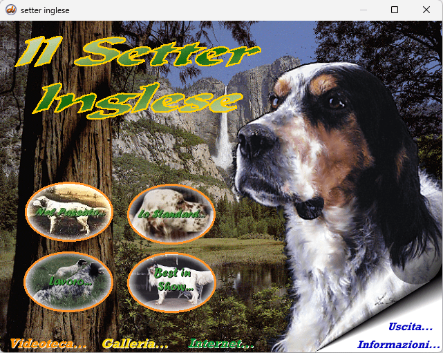 Alla fine degli anni ’90, quando Internet muoveva ancora i primi passi e i contenuti multimediali iniziavano appena a diffondersi, nacque un progetto davvero innovativo: il Cd-ROM del Setter Inglese. Creato nel 1999 utilizzando gli strumenti Macromedia, questo supporto rappresentò un’iniziativa unica nel suo genere, pensata per raccogliere e divulgare in modo completo tutte le informazioni dedicate a questa splendida razza canina.