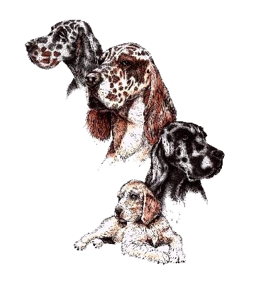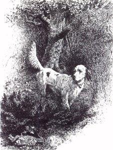 A quel tempo l’unico mezzo per poter catturare la selvaggina – e ci riferiamo grosso modo al XIV secolo – era la rete, che i cacciatori dell’epoca dovevano distendere sopra cane e uccelli per poter effettuare la cattura. Il cane, quindi, doveva limitarsi a individuare la presenza della selvaggina e a indicarne la posizione, avvicinandosi a essa il più possibile e fermandosi poi per qualche istante, in attesa dei tenditori di rete. Agli inizi del XV secolo, il conte de Foix, Gaston Foebus, in un suo famoso testo, descrive un cane dalle caratteristiche ben definite, nel quale si poteva già intravedere un setter e che venne denominato “chien d’Oysel”; questo cane veniva utilizzato, appunto, per la caccia con la rete. Il dottor Cajus, che cercò di classificare le razze conosciute in Inghilterra a quel tempo (1500), parlò di un cane spagnolo, giunto sull’isola dalla Francia, e lo descrisse come un cane bianco a macchie nere, molto abile nello scovare e fermare la selvaggina, tanto da distendersi immobile sul terreno e seguire la preda, strisciando, se questa avesse deciso di allontanarsi pedinando. Dalla seconda metà del Cinquecento fino alla fine del Seicento, altri parlarono di cani somiglianti all’attuale setter, e da alcuni testi e dipinti dell’epoca emerge la presenza di cani simili anche in Francia, utilizzati soprattutto per la caccia con il falco alla piccola selvaggina. A questo proposito sorsero, in quegli stessi anni, alcune polemiche, in quanto alcuni sostenevano addirittura che il progenitore del setter sarebbe stato inizialmente importato dalla Spagna in Francia, dove si sarebbe provveduto ad allevarne parecchi soggetti, giunti poi solo in un secondo tempo in Inghilterra con caratteristiche ormai già ben definite. Polemiche dell’epoca a parte, furono comunque gli inglesi, per primi, a dare al setter quelle peculiarità che riscontriamo ancor oggi nella razza, come, per esempio, la sua caratteristica di “sedersi” o, meglio, di abbassarsi sfiorando il terreno con il posteriore completamente flesso prima di rimanere immobile in ferma. “Setter” significa, infatti, “che ferma seduto”, dal verbo inglese “to sit”. La nascita del moderno setter inglese è comunque indissolubilmente legata al nome di Sir Edward Laverack, che nacque nel 1798 e morì nel 1877.